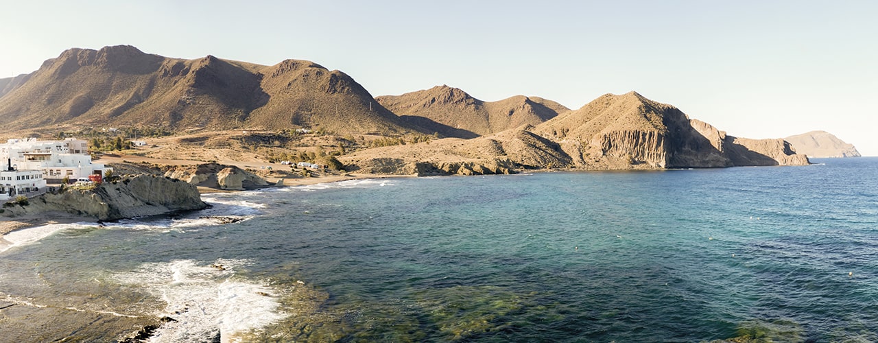• Pueblo de la Isleta del Moro con sus casa blanca y su Islote que le da nombre, protege de los temporales a las embarcaciones.